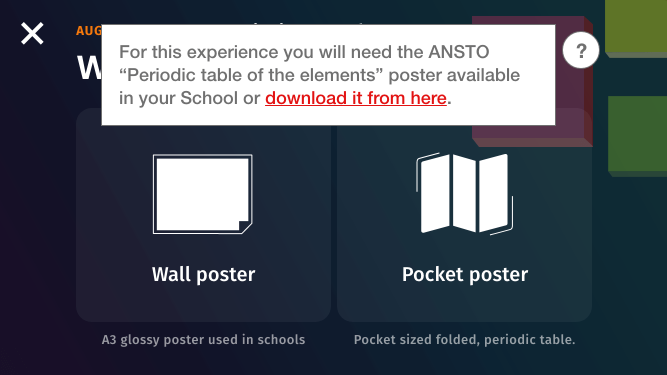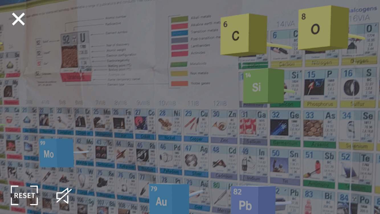 Part 1. Create an immersive AR app, triggered by the Periodic Table of Elements poster (that currently exists in schools).
