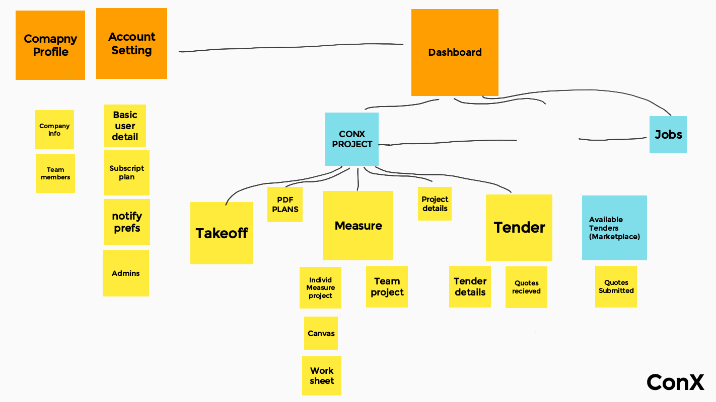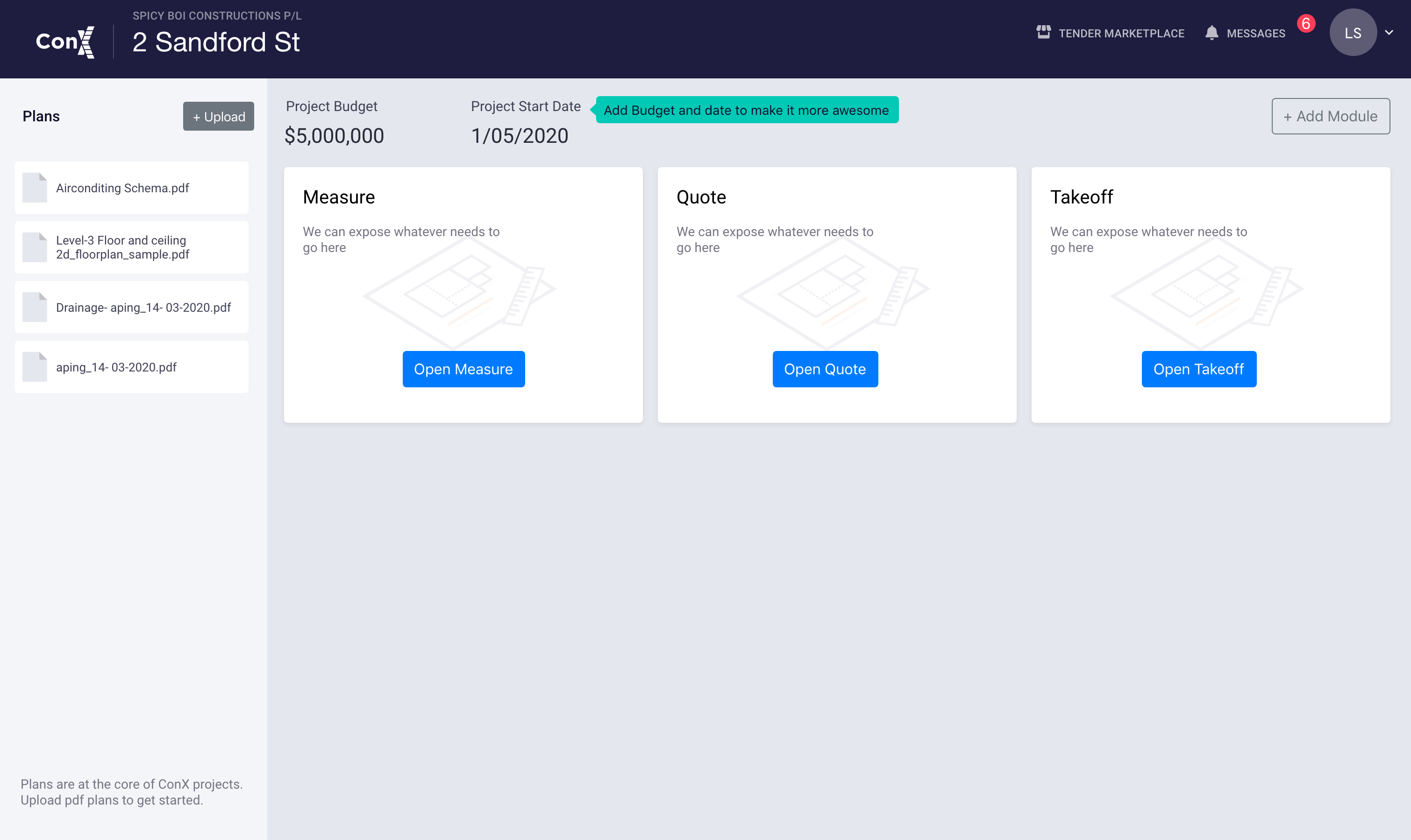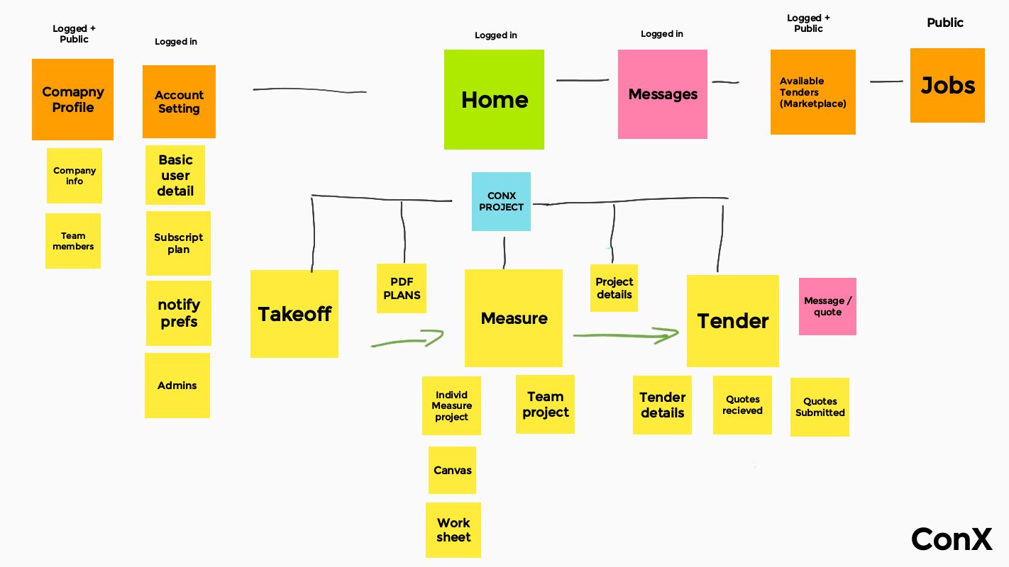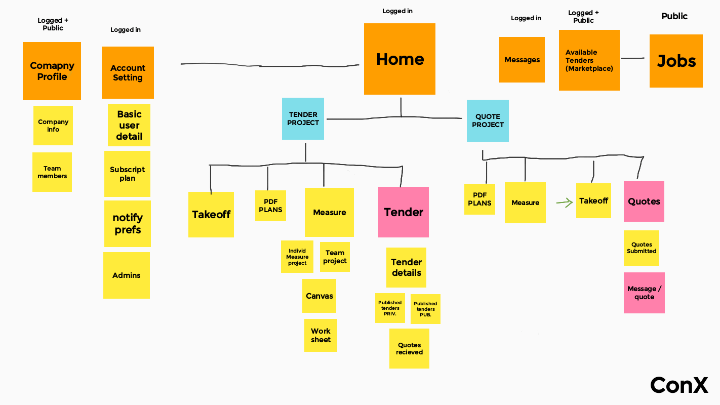 After more discovery it became apparent that the main funnel entry into the ecosystem was Measure, which needs to co-exist in all project types. There was also some confusion with people wanting to simply Measure plans, and then deciding to create a quote or a tender.