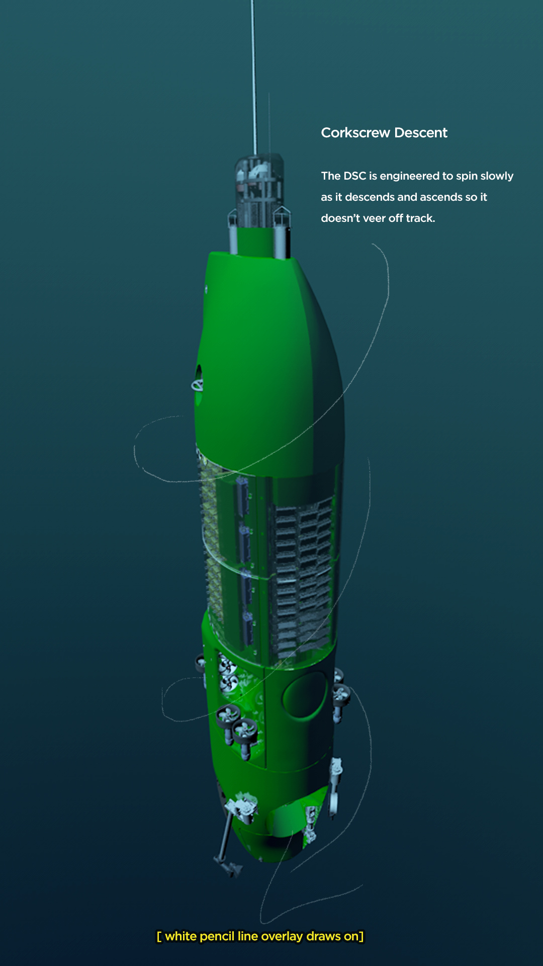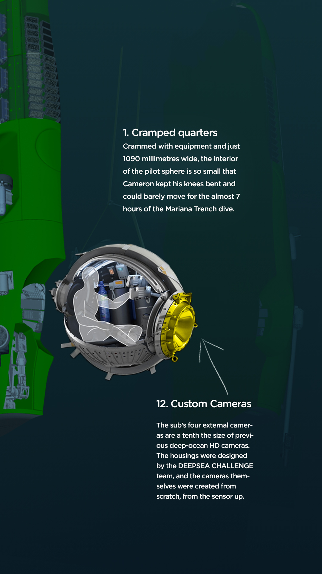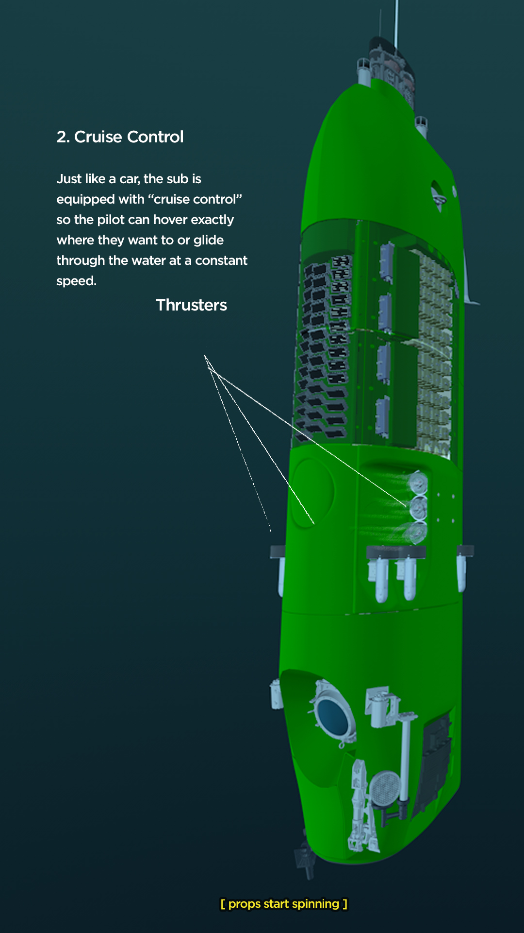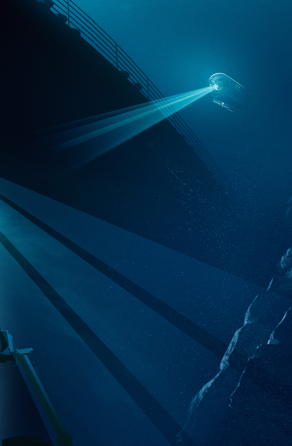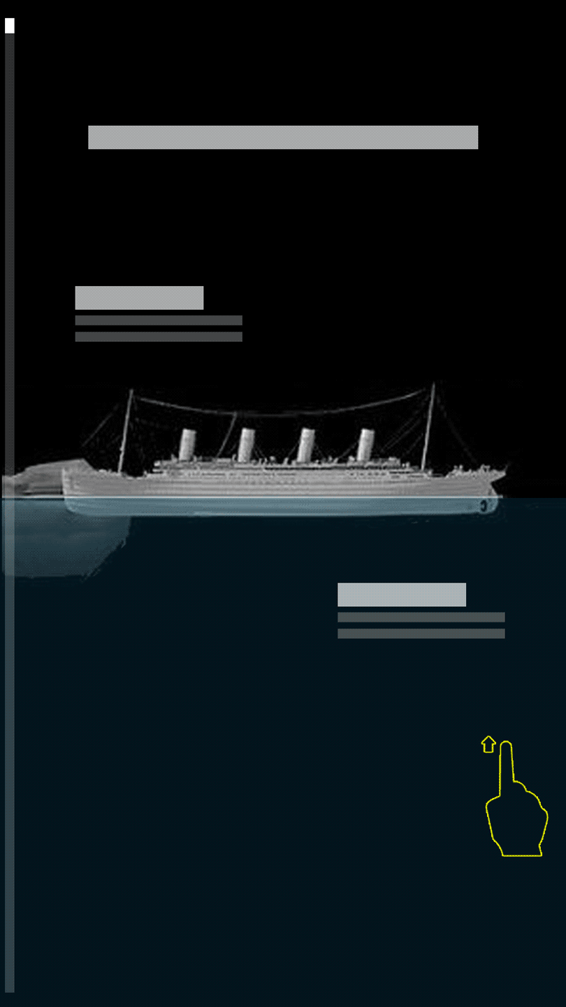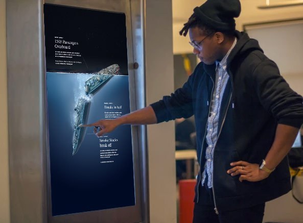 Design an engaging, interactive touchscreen experience showcasing 3 vessels’ descent to the bottom of the ocean – The Deepsea Challenger’s descent & sinking of the Titanic & Bismarck.