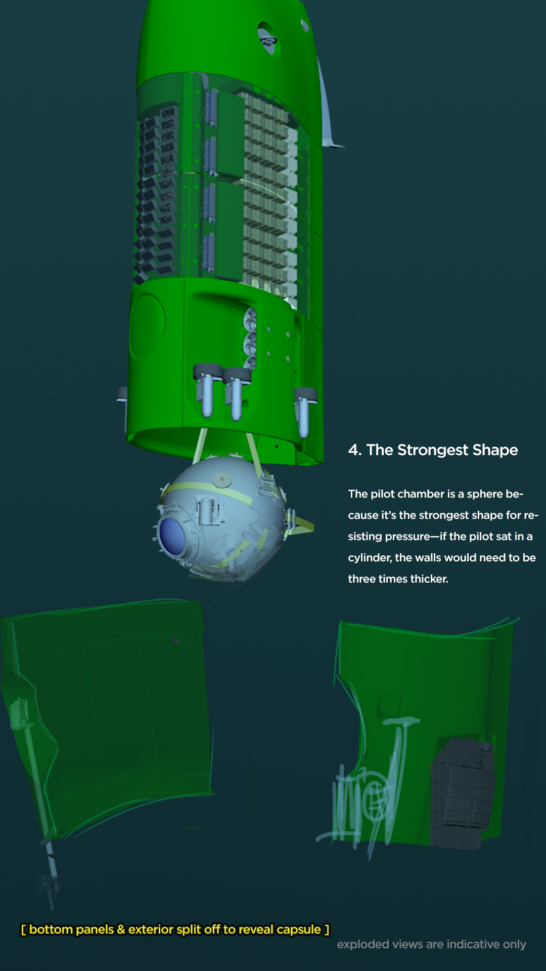 By simply swiping up & down, the user drives a complex animation sequence, exploding the ship into parts and revealing snippets of the storyline as they go, with minimal input.