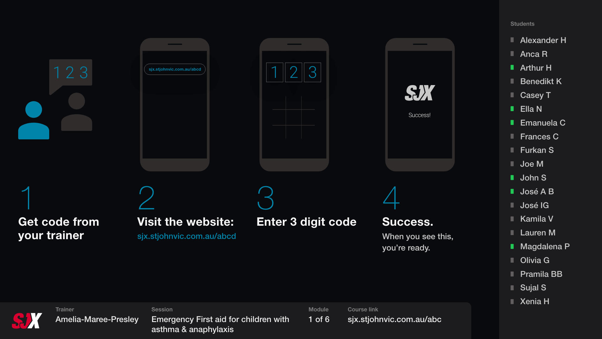 • Enrol students (mark present / absent)